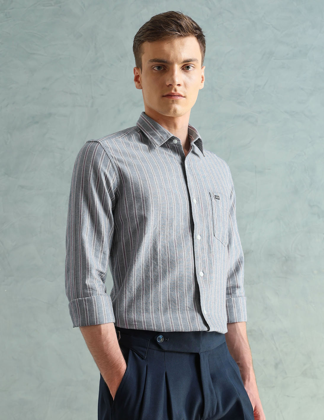 Self Design Vertical Striped Oxford Shirt