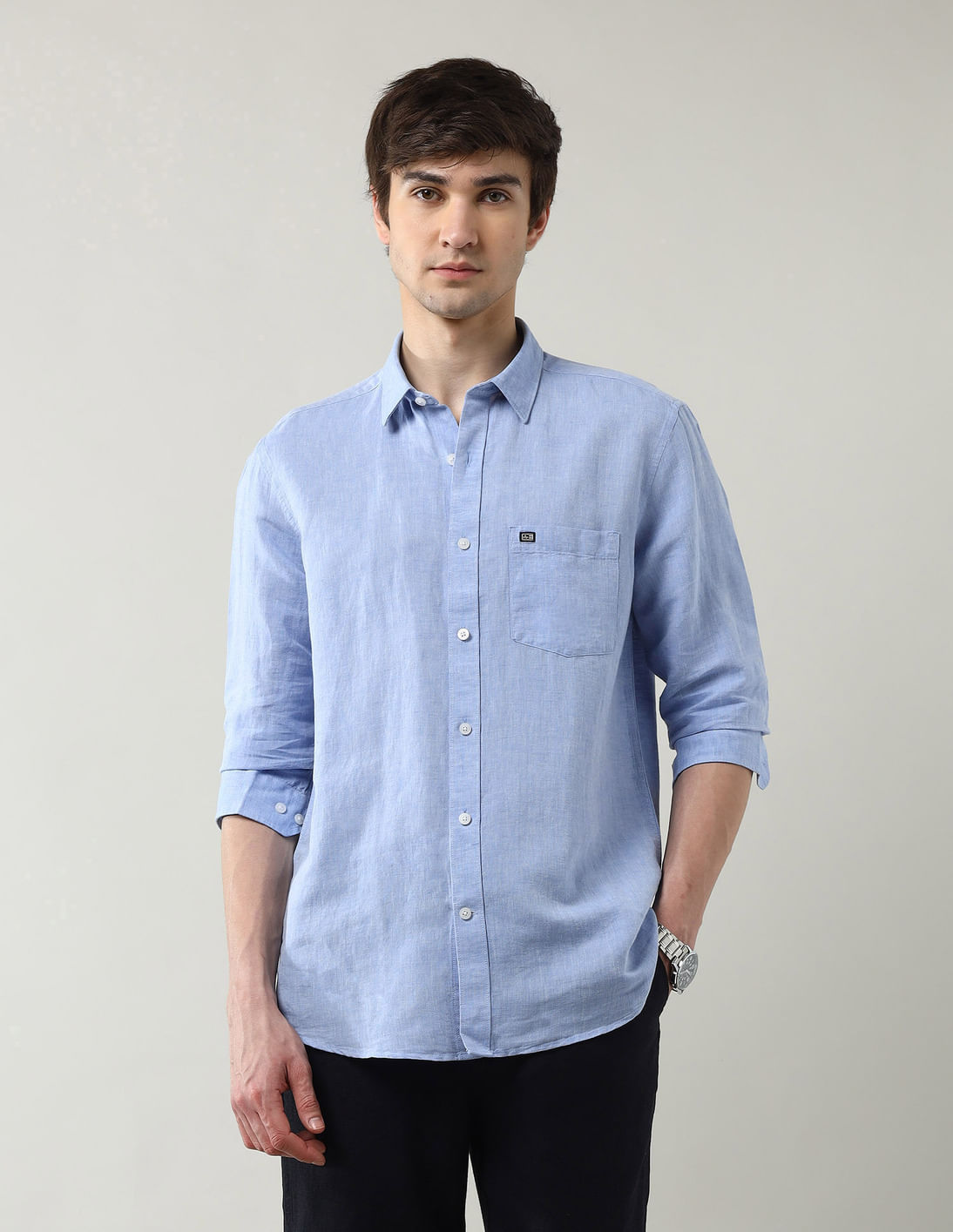 Regular Fit Solid Pure Linen Shirt
