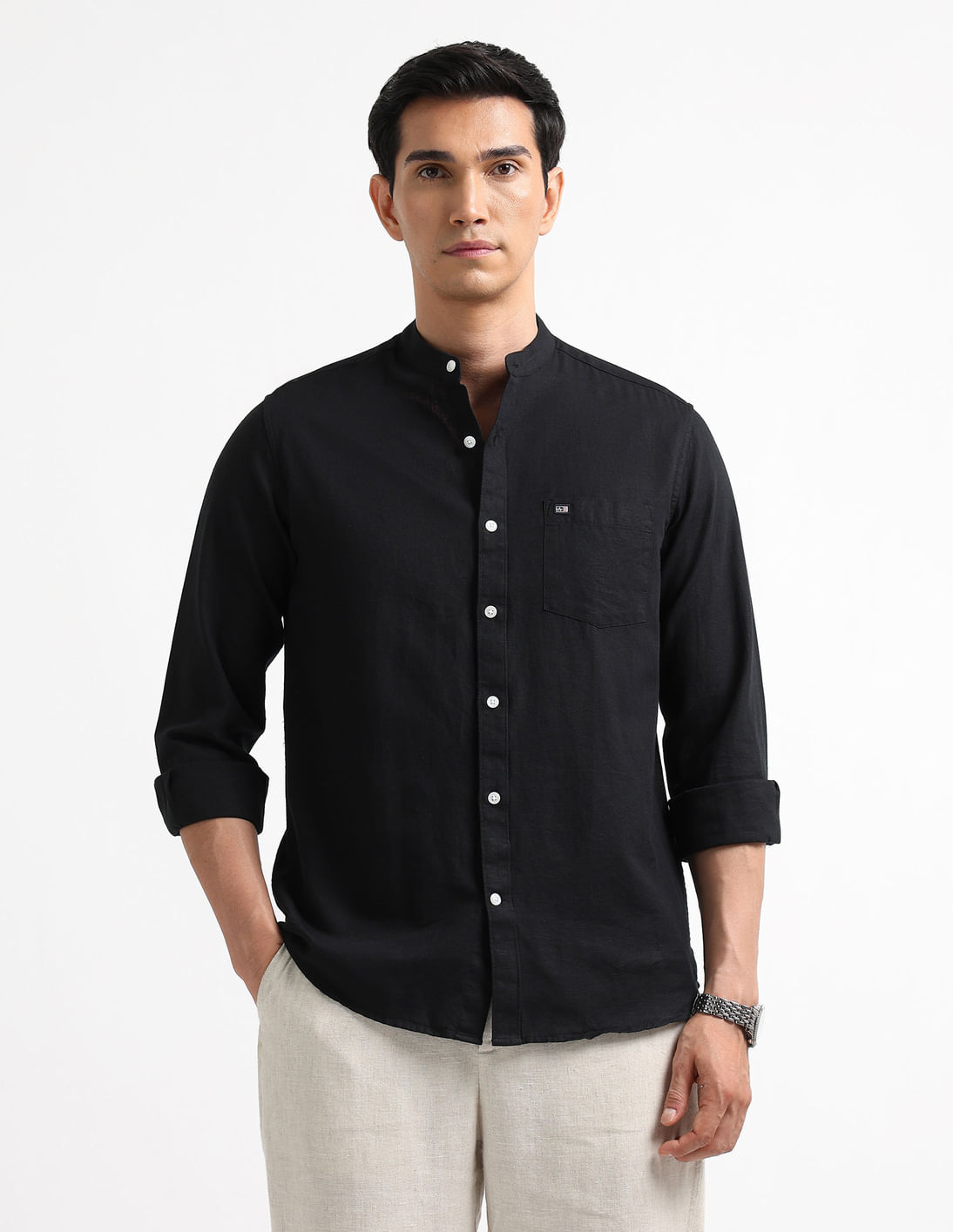 Slim Fit Solid Mandarin Shirt