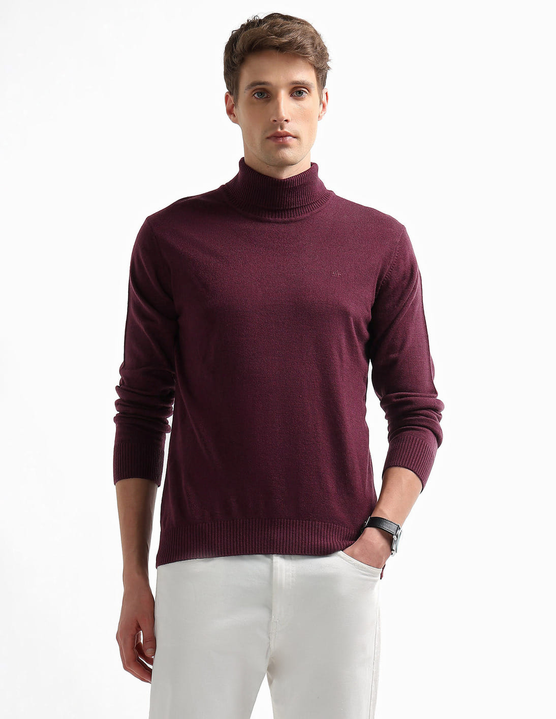 Turtleneck Patterned Knit Sweater
