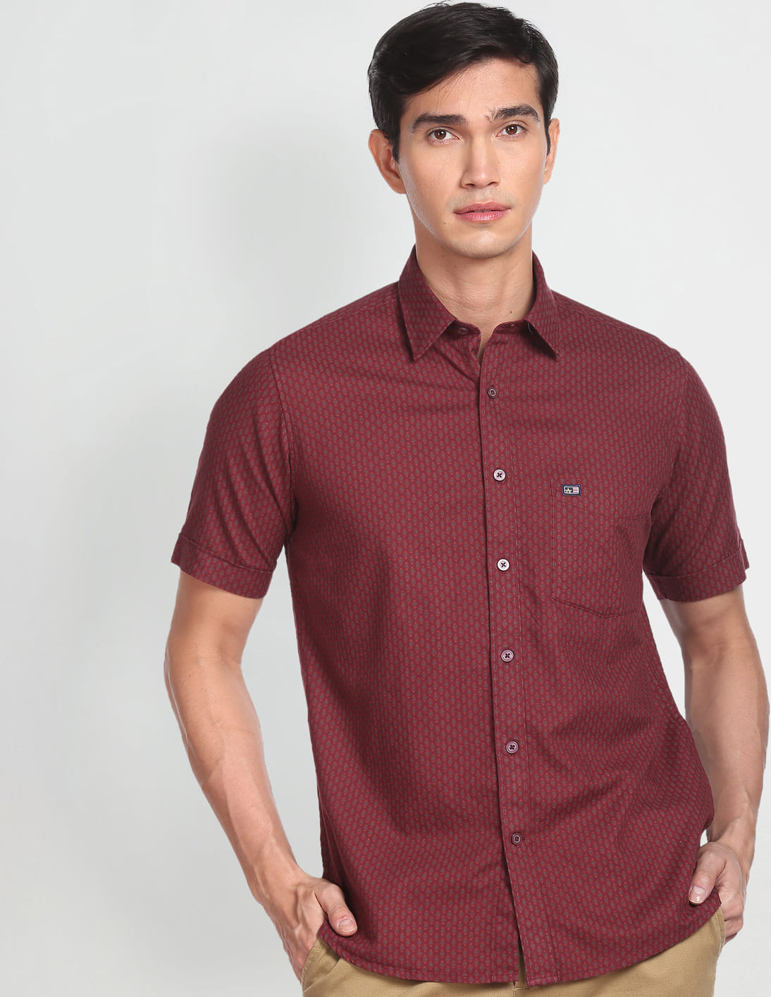Geometric Print Herringbone Casual Shirt