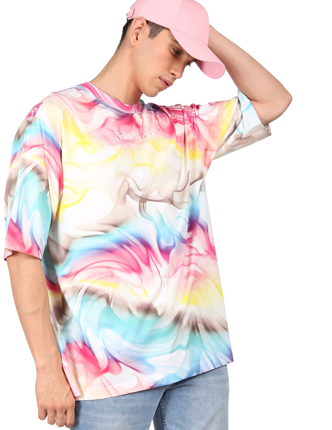Men Multi-colour Crew Neck Abstract Print T-Shirt