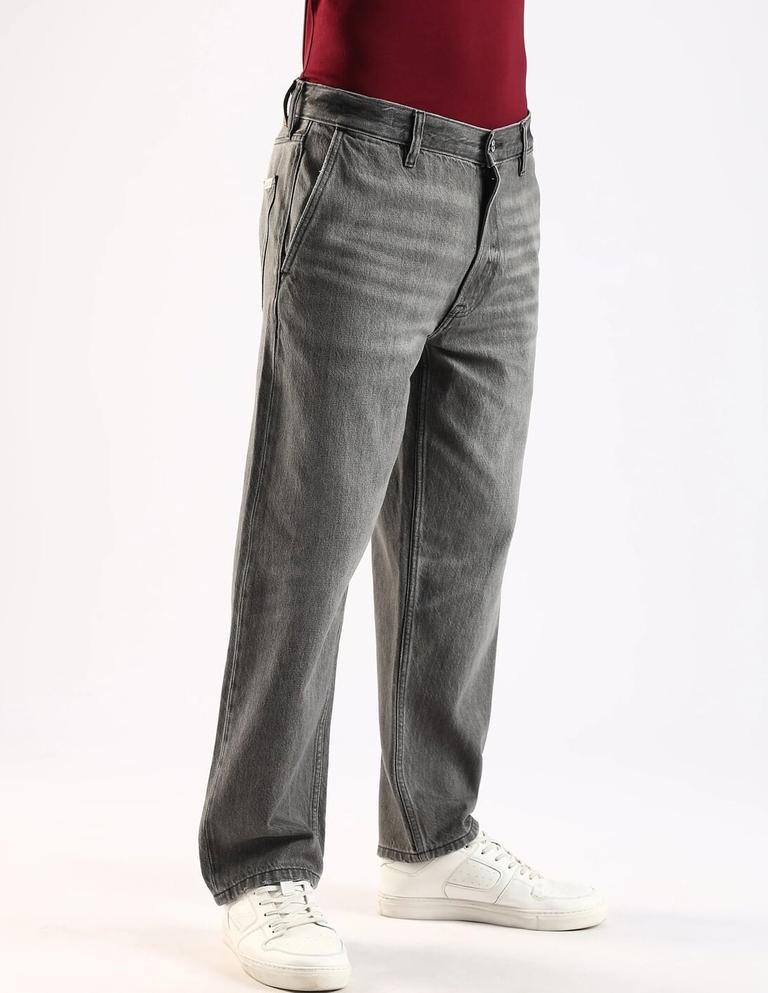 Mid-Wash Tapered Fit Mid Rise Jeans