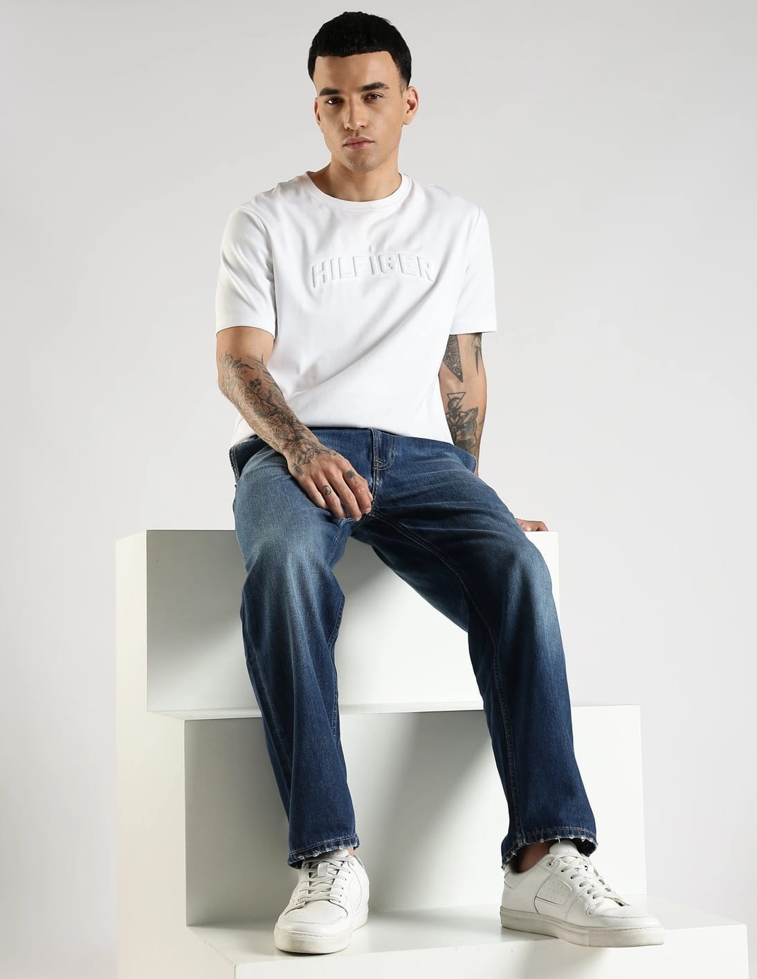 Heavy-Wash Staright Fit Mid Rise Jeans