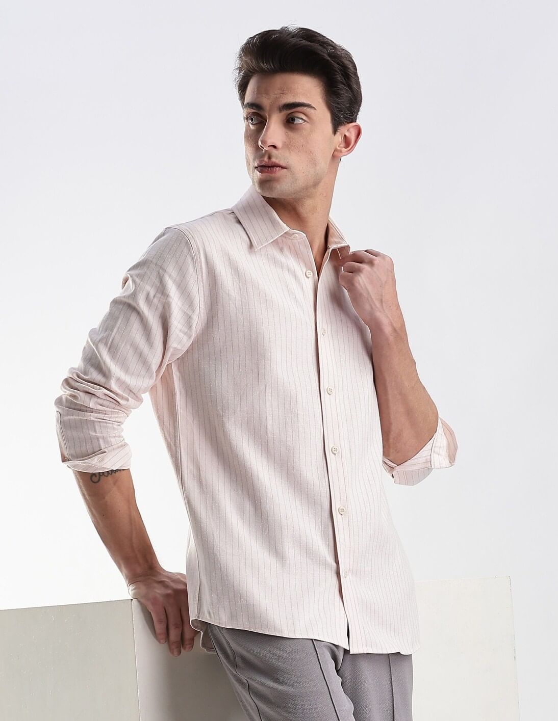 Pinstripes Slim Fit Twill Shirt