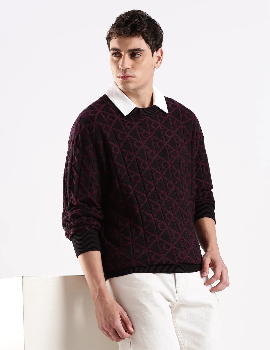 Quilted Relaxed Fit Cotton Sweater