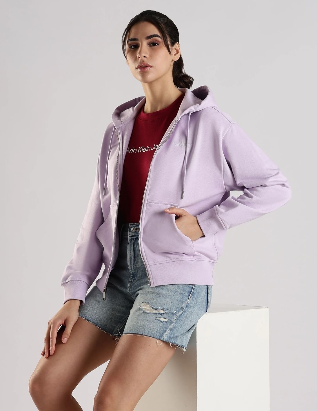 Regular Fit Cotton Hooded Neck Front-Open Sweatshirt
