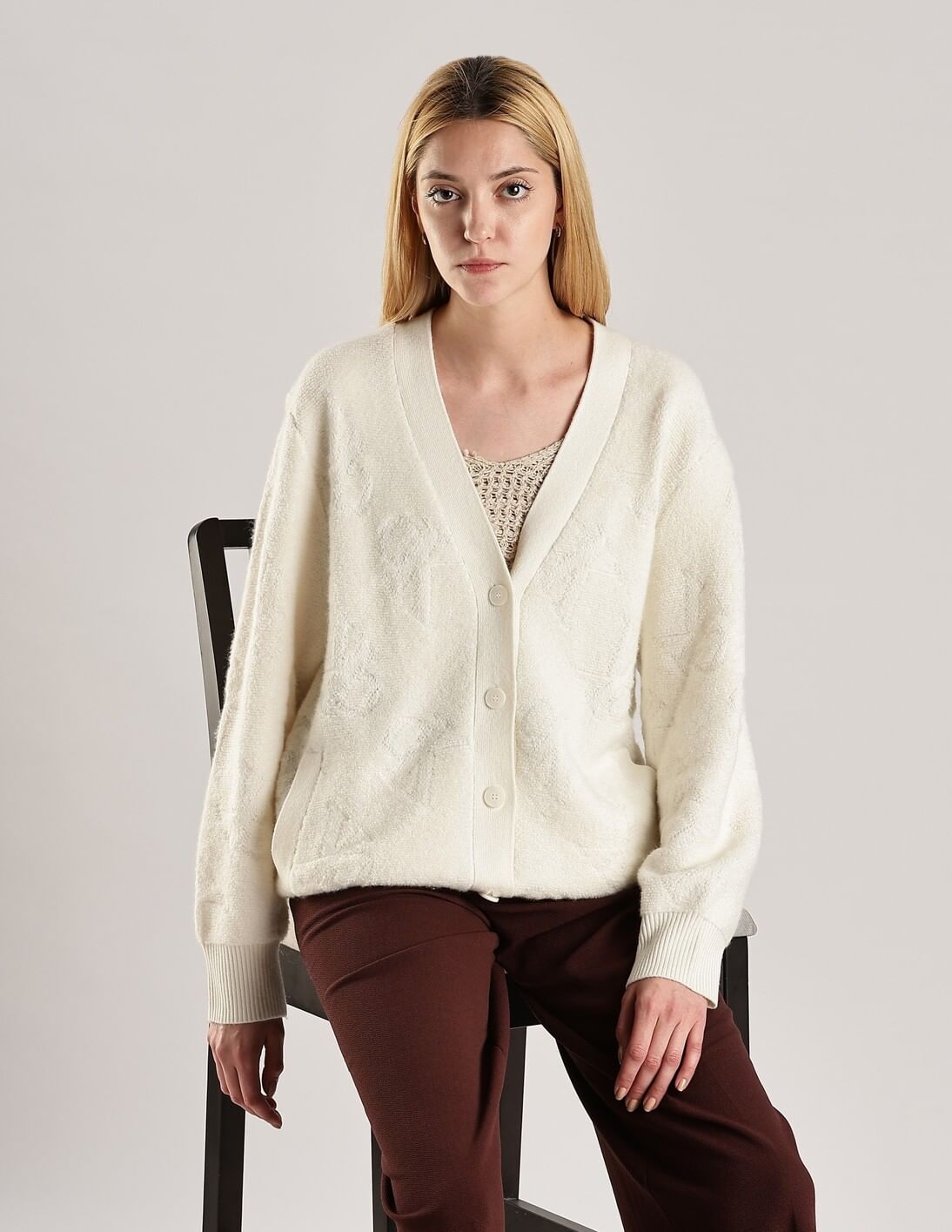 Relaxed Fit Nylon V-Neck Front-Open Sweater