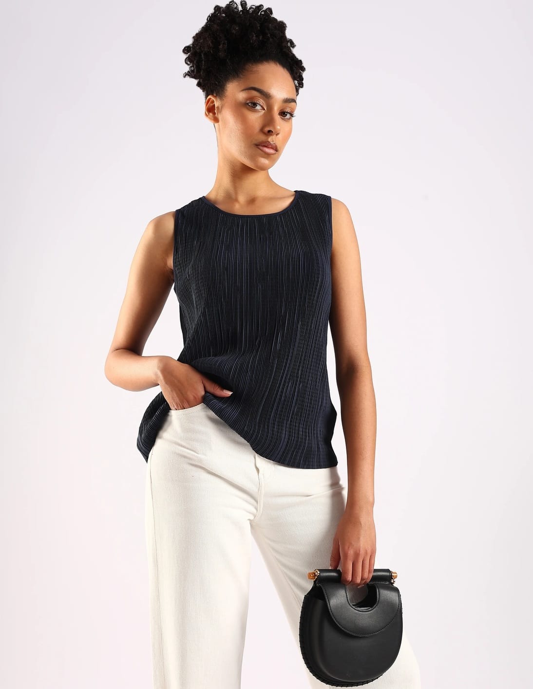 Slim Fit Polyester Round Neck Top