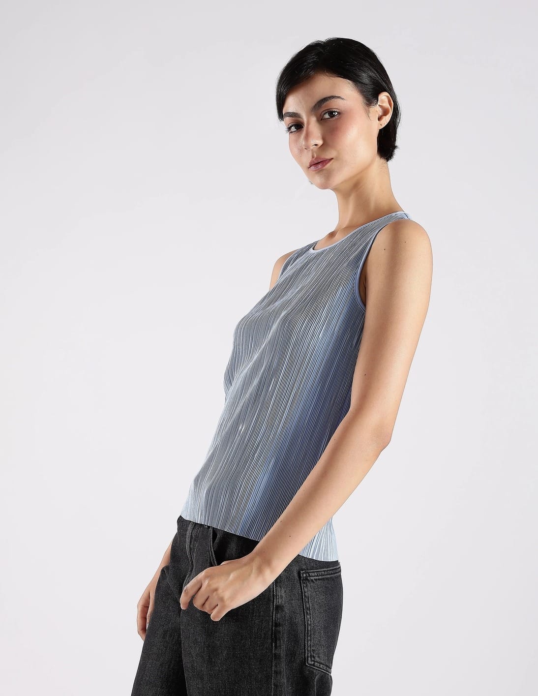Slim Fit Polyester Round Neck Top