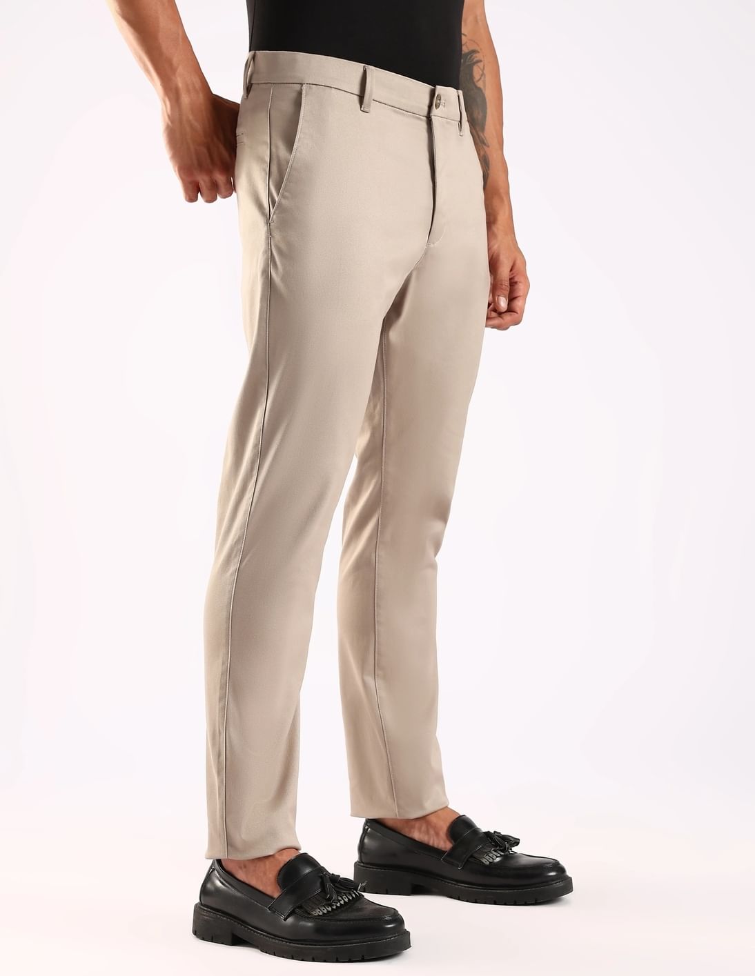 Slim Fit Solid Mid Rise Trouser