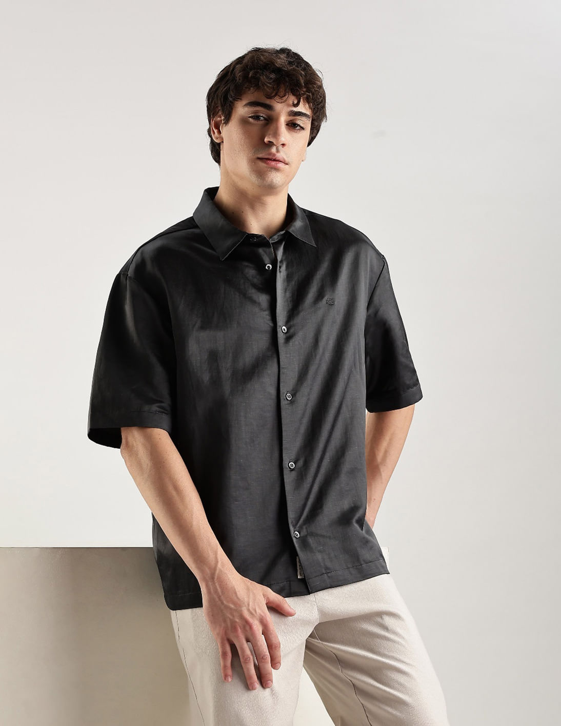 Solid Regular Fit Satin Woven Shirt