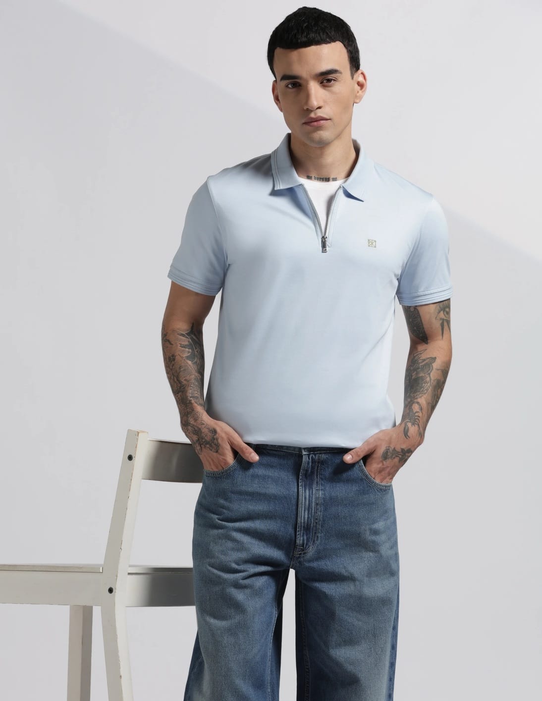 Solid Relaxed Fit Cotton Polo T-Shirt