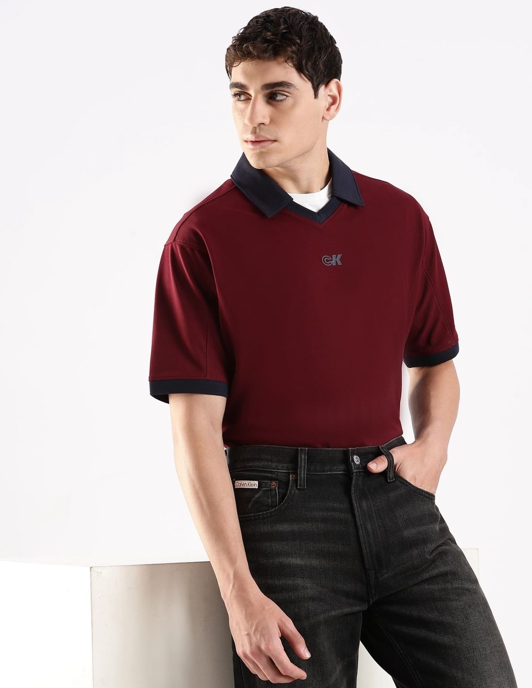 Solid Relaxed Fit Cotton Polo T-Shirt