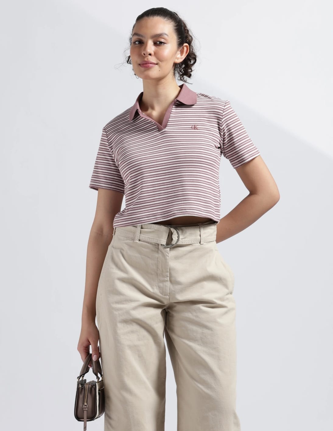 Striped Relaxed Fit Cotton Polo T-Shirt