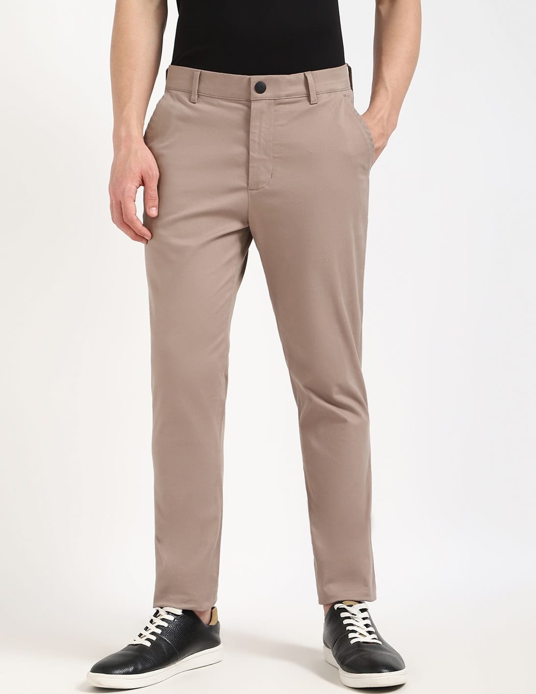 Tapered Fit Solid Mid Rise Trouser