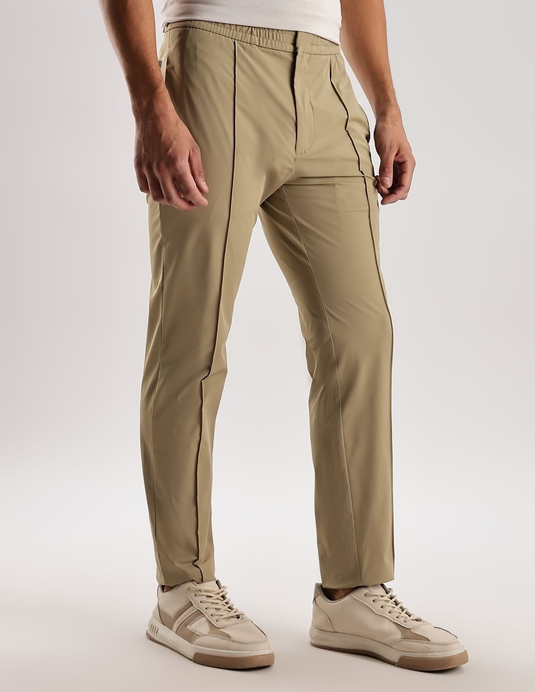 Tapered Fit Solid Mid Rise Trouser