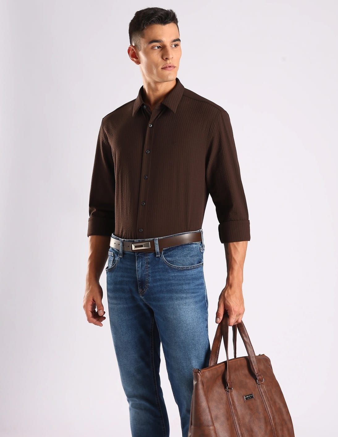 Textured Relaxed Fit Polyester Shirt