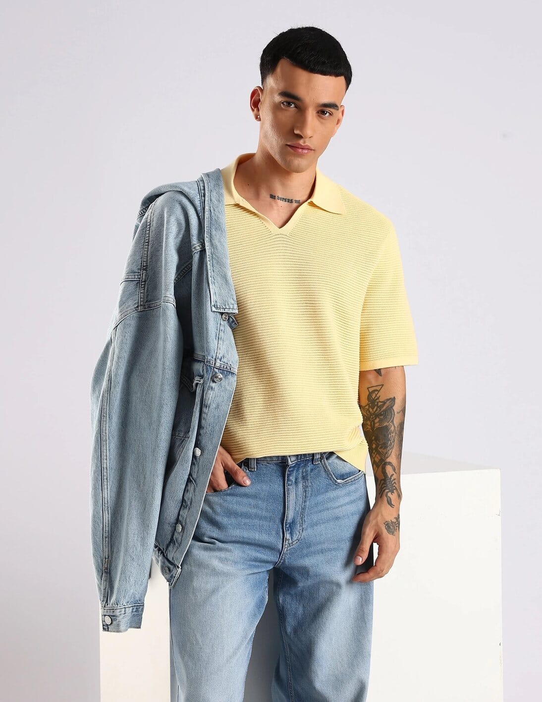 Textured Relaxed Fit Viscose Polo T-Shirt