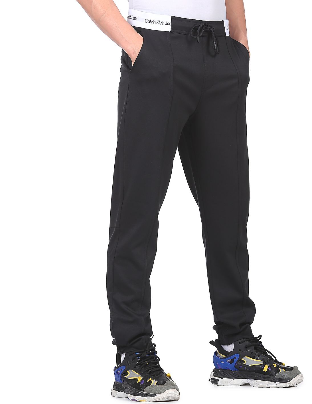 Men Black Mid Rise Logo Waistband Joggers