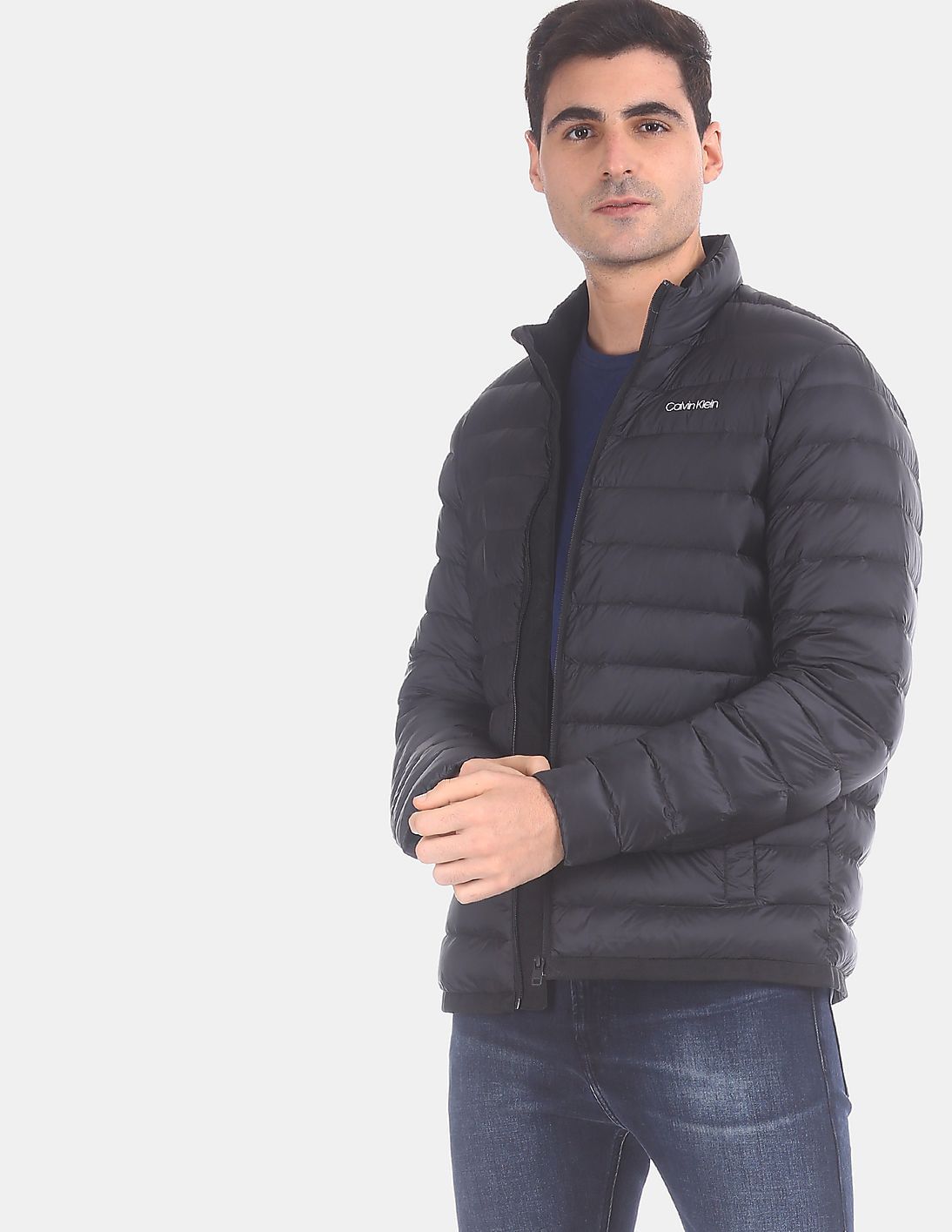 Men Black High Neck Light Down Liner Insulator Jacket
