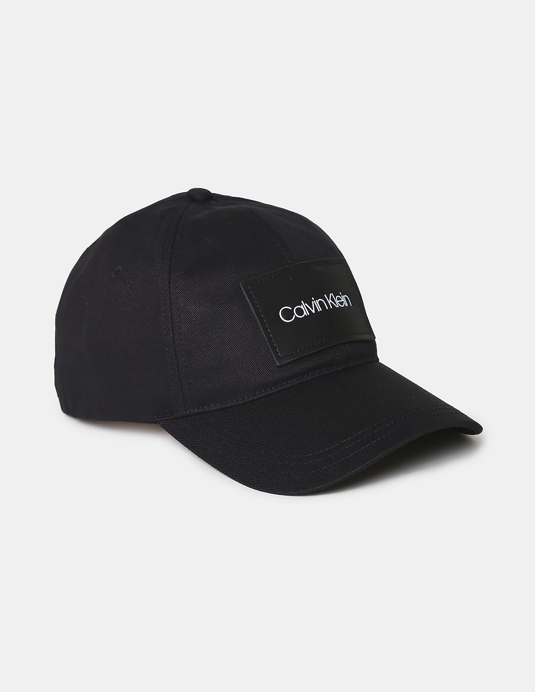 Men Black Leather Patch Cotton Twill Baseball Cap