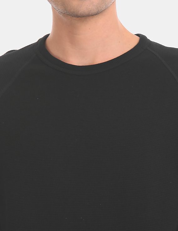 Men Black Monogram Raglan Sleeve Waffle Knit T-Shirt