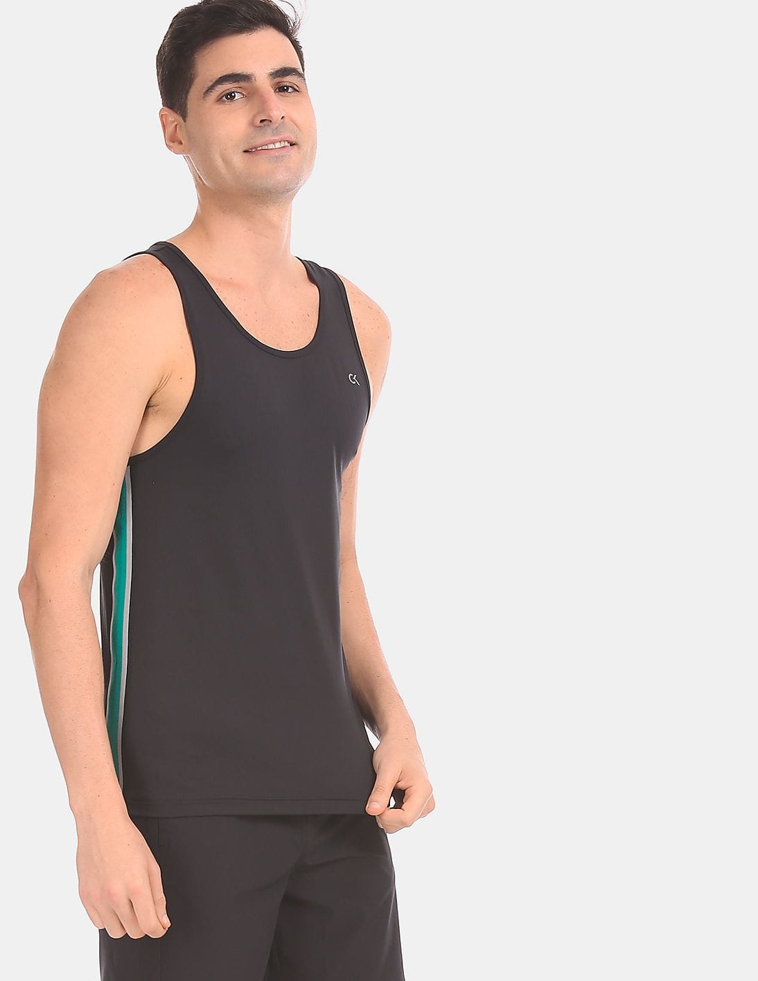 Men Black Round Neck Side Panel Tank T-Shirt