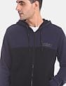 Men Navy And Black Zip Up Colour Block Hoodie