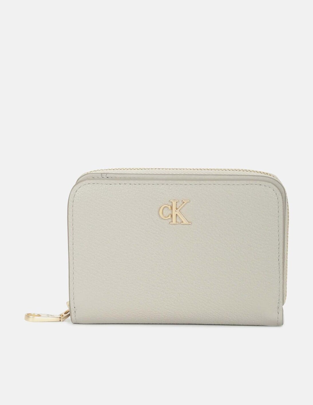 Textured Beige Leather Zip Around Wallet