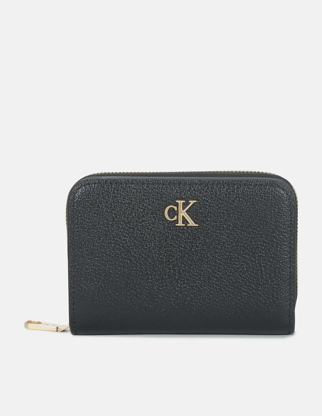 Textured Black Leather Zip Around Wallet