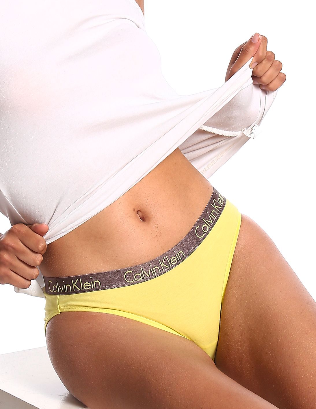 Women Yellow Elasticized Waist Solid Bikini Briefs