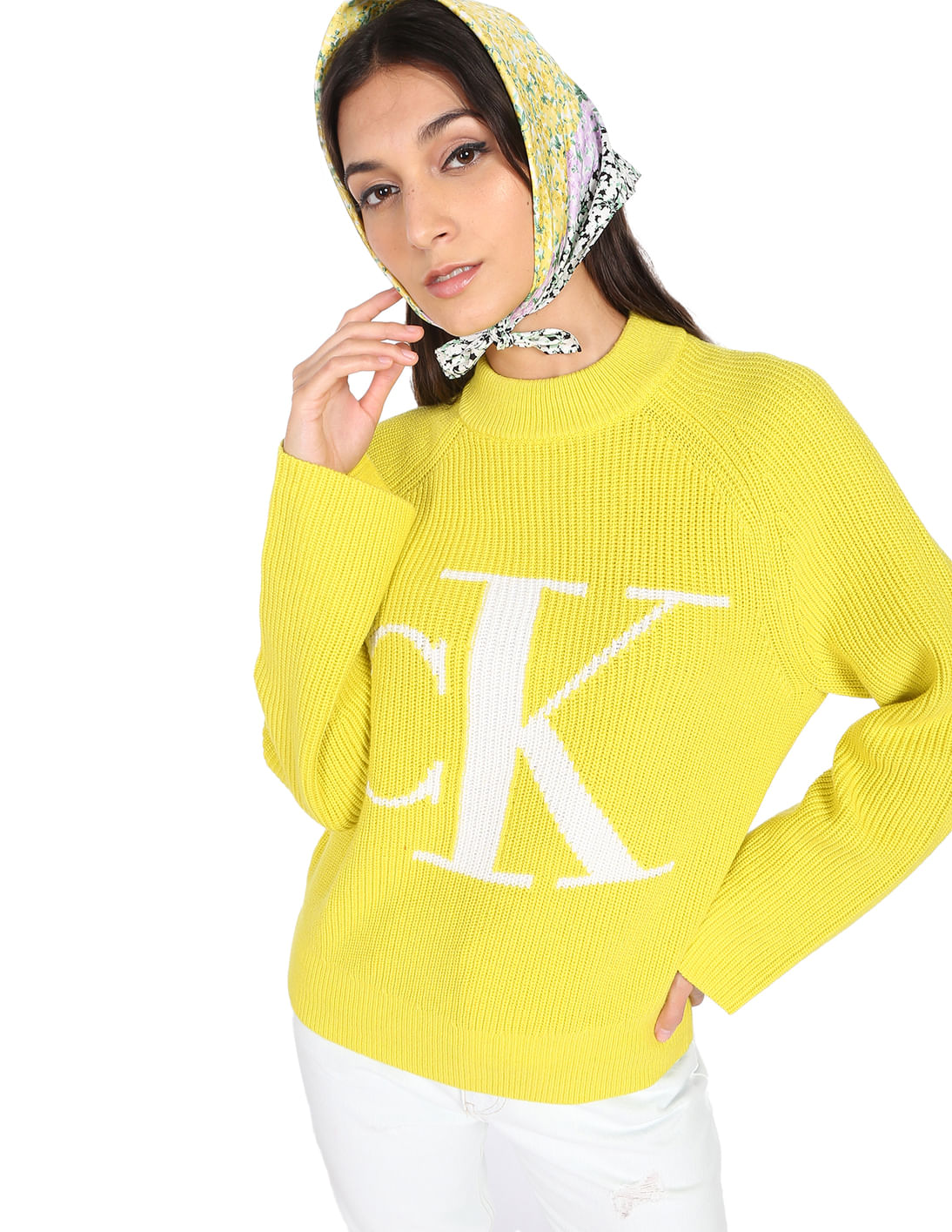 Women Yellow Brand Monogram High Neck Sweater