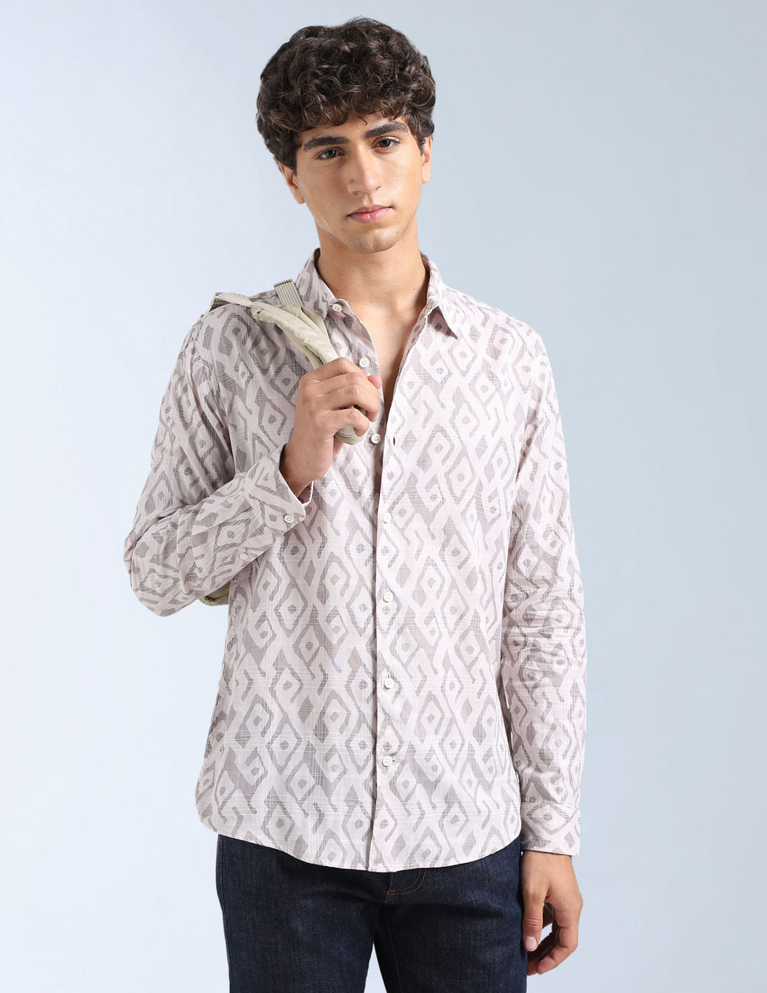 Geometric Printed With Textured Checked Slim Fit Shirt
