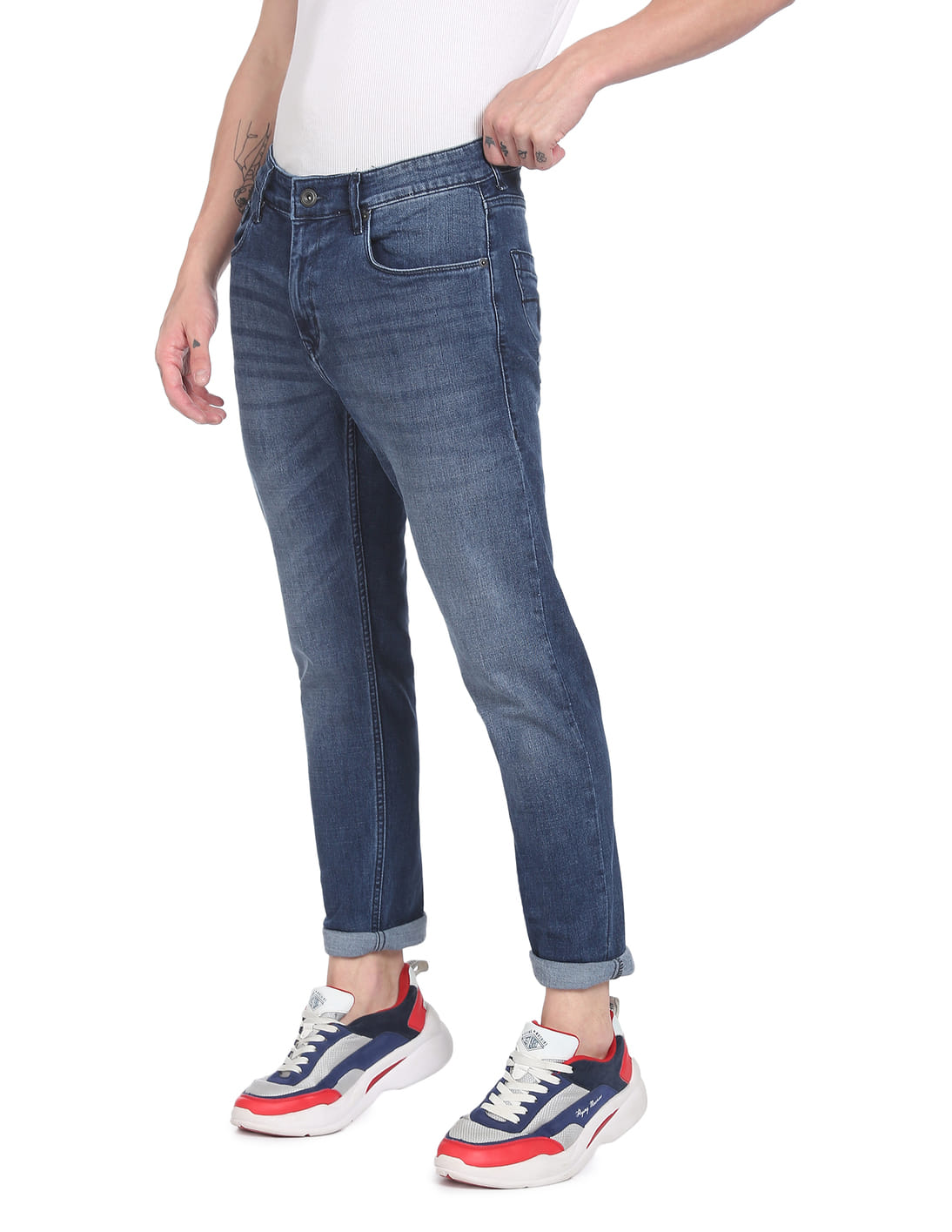 Mid Rise Slash Slim Tapered Fit Stone Wash Jeans