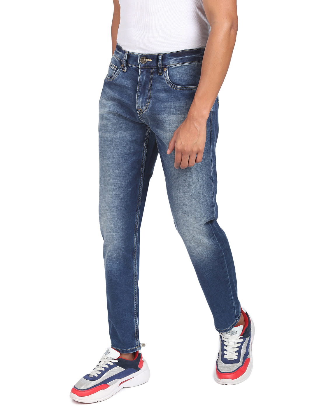 Stone Wash Slash Slim Tapered Fit Jeans