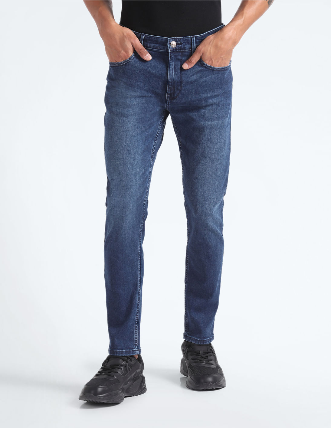 Mid Rise Slash Slim Tapered Jeans