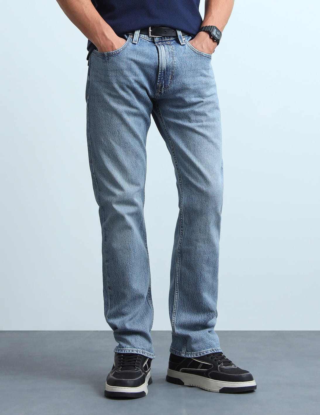 Straight Fit Whiskered Jeans