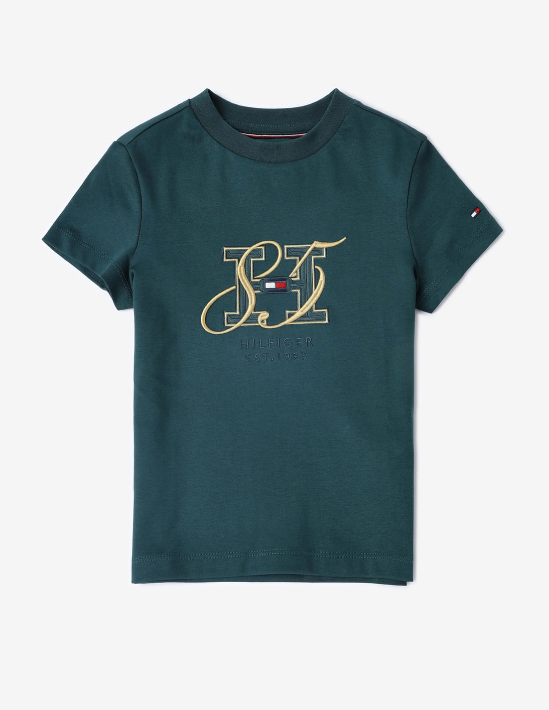 Boys Embroidered Logo Regular Fit Cotton T-Shirt