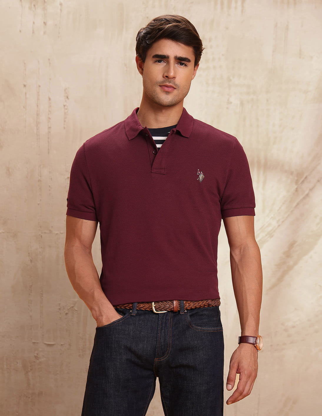 Textured Pure Cotton Polo Shirt
